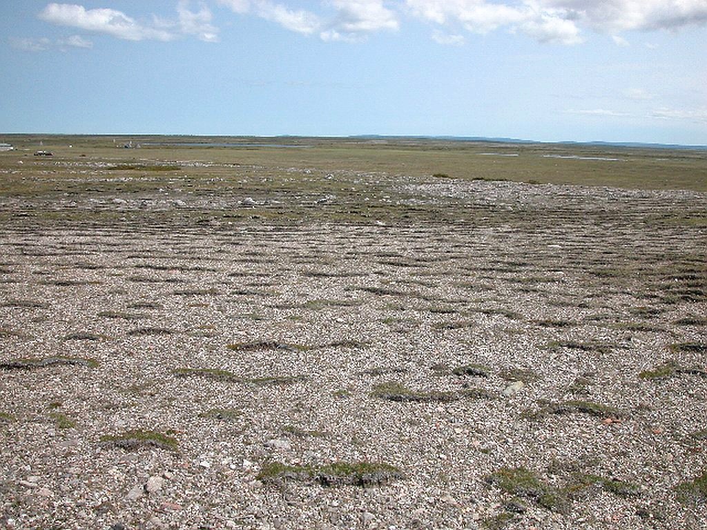An area of coarser arcuate vegetational elements. Port au Choix. Photo: Dulcie House. [CLICK image to enlarge.]
