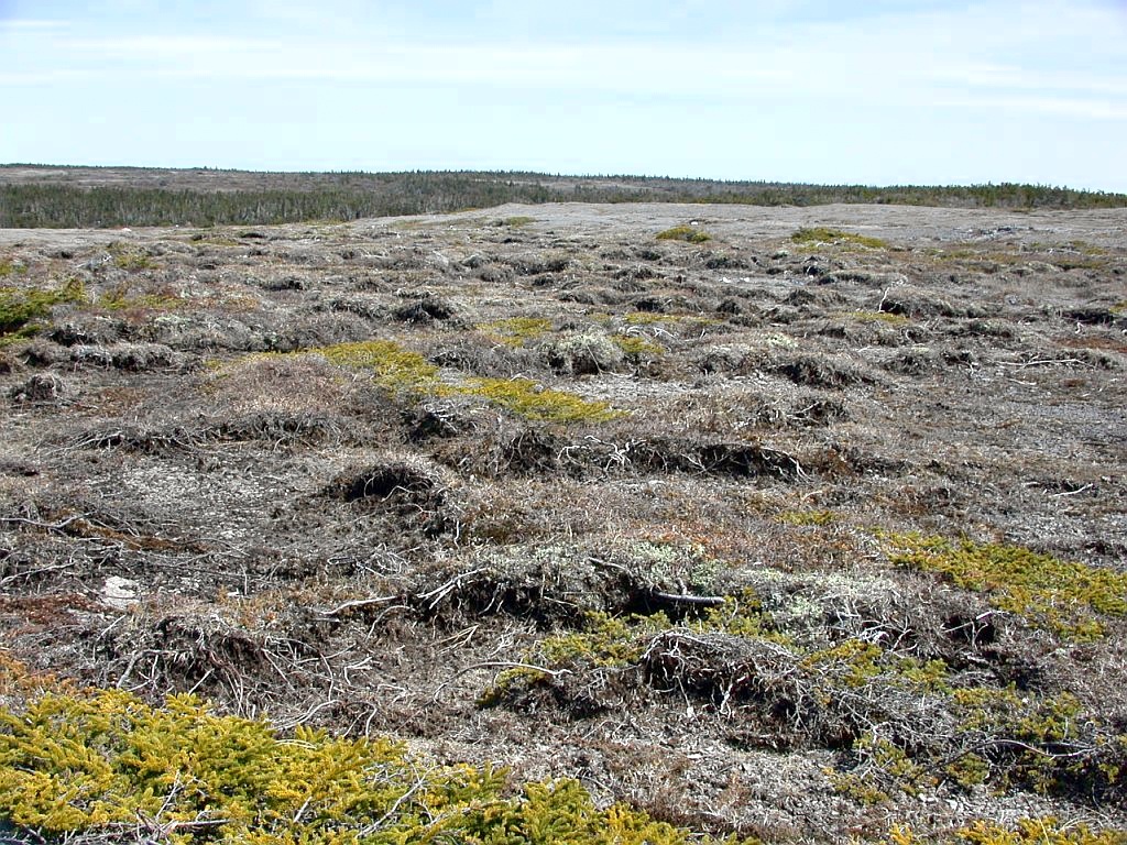 An area of arcuate vegetational elements on slope. Port au Choix. Photo: Michael Burzynski. [CLICK image to enlarge.]