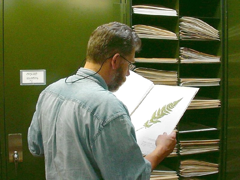 John Maunder using the herbarium at the Provincial Museum - Photo: Randy Batten.